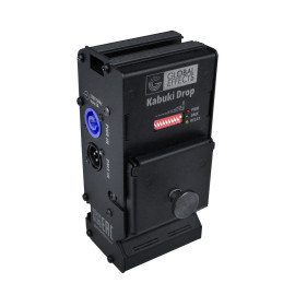 Cистема сброса занавеса Global Effects Kabuki Drop DMX разработана для сброса занавесов, знамен, воздушных шаров или других элементов шоу. Легкая и понятная система управления на DMX (ст функцией переключения на режим 220В). Закрепление без люверсов и крючков - не требуется обработка ткани, сброс занавеса происходит непринужденно, естественно и красиво, исключая цепляния, механические зажатия и травмирование от металлических элементов на занавесе. Простая замена струбцины для фермы любого диаметра. Струбцину можно закрепить не только сверху, но и на задней части корпуса, таким образом крепление занавеса будет вровень с фермой. Легкая регулировка зажима ткани. Можно использовать материал любой толщины (от 0 до 3мм). Возможность соединить последовательно сколько угодно устройств. Разъемы находятся в боковых частях корпуса. Простота и надежность конструкции корпуса и механизмов. Рекомендуется закрепление занавеса шагом не более 1м. Один элемент выдерживает вес занавеса: шелк: до 4 кг / стандартная ткань: до 8 кг / бархат - до 10 кг. Преимущества перед другими системами сброса занавеса: не нужно точно устанавливать элементы системы сброса занавеса в соответствии с расположением люверсов на ткани / если нужно передвинуть занавес, то можно разжать струбцины и сдвинуть весь занавес / тонкие и легкие материалы можно растянуть между элементами системы сброса занавеса до 2-3 метров.