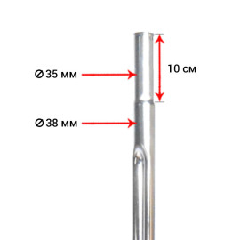 Верхняя часть: с 38 мм переходит на 35 мм и составляет 10 см в длину