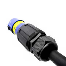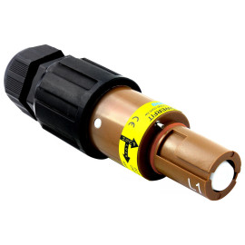Разъемы PowerFit совместимы с однополюсными разъемами питания основных производителей. Инновационный запатентованный штифт замка обеспечивает безопасность и удобство без дополнительных инструментов при отсоединении. Основной материал разъёма PowerFit - термопласт с высокой ударопрочностью и термостойкостью с огнезащитным составом. Эргономичная резиновая рукоятка на кабельном разъеме обеспечивает максимальный комфорт при работе. Кабельный ввод M40 входит в стандартную комплектацию. При соединении разъемов степень защиты IP67. Конструкция нажимных кнопок упрощает сцепление и расцепление. Соответствующая информация о фазах и линиях четко обозначена на разъемах для облегчения идентификации. Контакт сделан из латуни с посеребренным покрытием, что обеспечивает отличную проводимость. Кабельный разъём Source, соединяющийся с кабельным или панельным разъёмом Drain. Контакты снабжены пластиковой заглушкой для предотвращения случайного прикосновения к токоведущим частям.