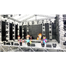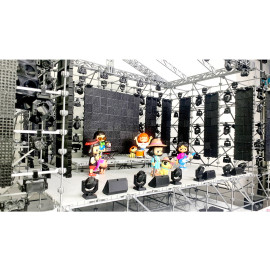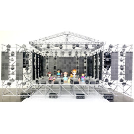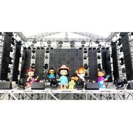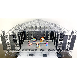 Состав комплекта: фермы, стыковочные кубы, сценические элементы системы лайер и настилы, лестницы, акустические линейные массивы, сабвуферы и мониторы, светодиодные экраны, световые прожекторы, кронштейны, хомуты, зажимы, струбцины
