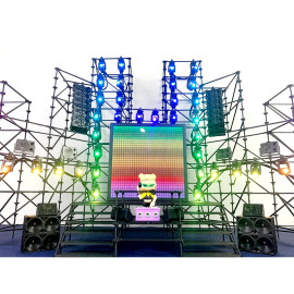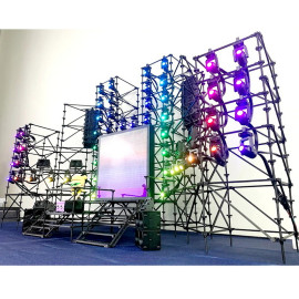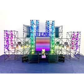 Световые прожекторы и светодиодный экран управляются через пуль ДУ, приложение на смартфоне и по ArtNet.