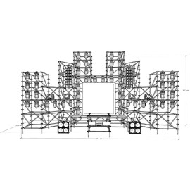 Состав комплекта: сценические элементы системы лайер и настилы, лестницы, акустические линейные массивы, сабвуферы и мониторы, светодиодный экран 20х20 см, световые прожекторы, кронштейны, хомуты, зажимы, струбцины, блок управления Wi-Fi + ArtNet – 1 шт, минифигурка – 1 шт