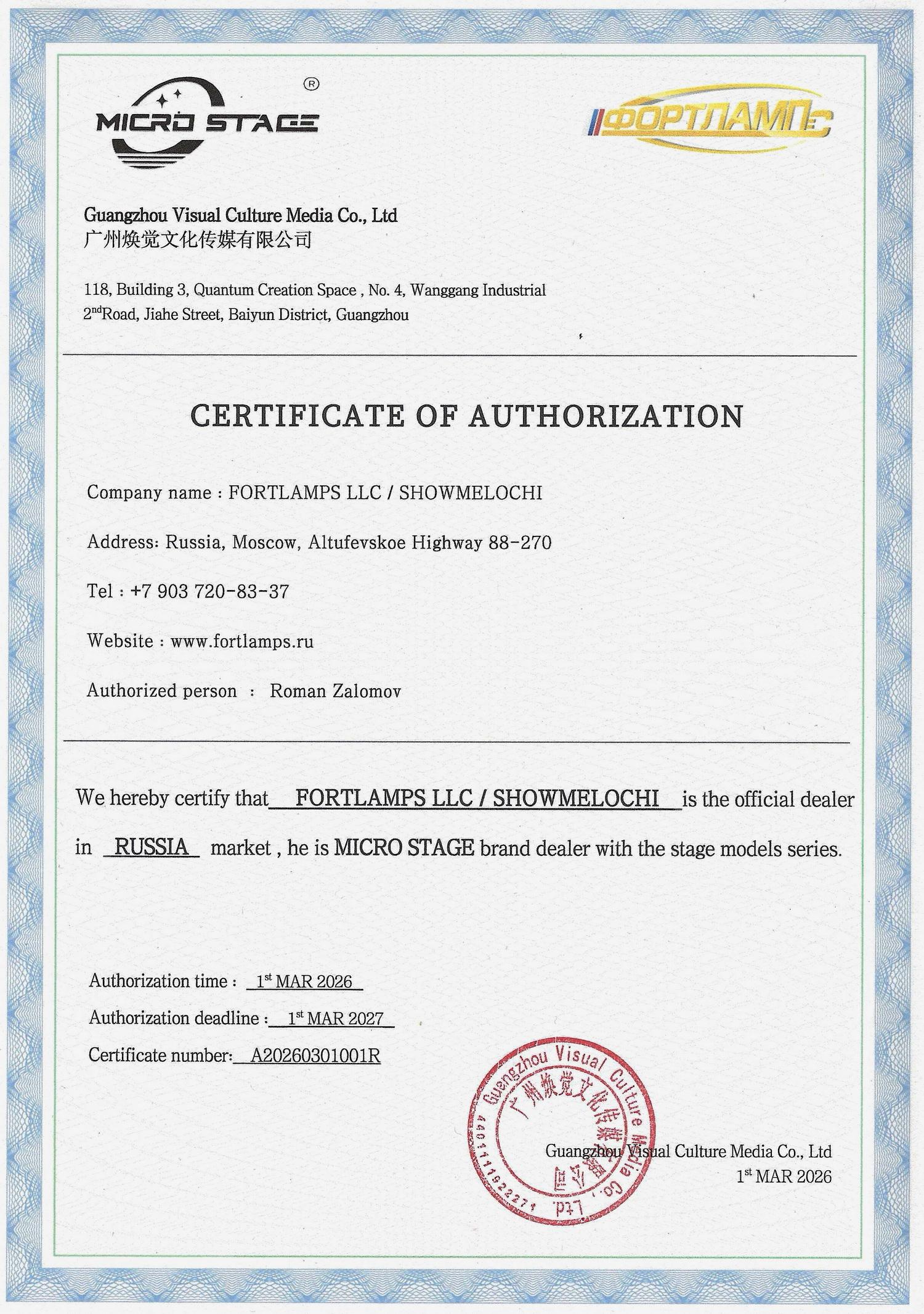 Сертификат дистрибьютора продукции MICROSTAGE (jpg, 1.11 Mb)